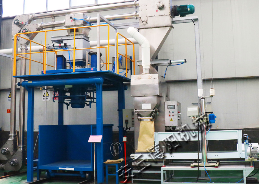 粉末噸袋包裝機出料口與包裝袋直接相連,基本實現了物料的(de)無(wú)塵包裝,有效避免了物料(liào)與勞動力的直接接觸。