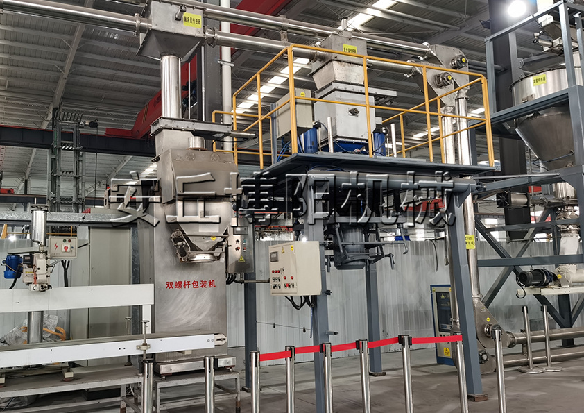 由可調速電動機、皮帶傳動、螺旋軸、加(jiā)料嘴組成,加料嘴邊(biān)有吸塵口,可變速電動機(jī)由電氣箱控製轉速,通過螺旋將(jiāng)物料從料倉加入包裝袋。